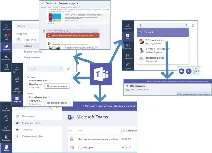 Педагог заранее выстраивает структуру каналов группы: тематических разделов внутри Teams, каждый под конкретную дисциплину. К каналам подключается образовательный контент: библиотеки SharePoint, OneDrive, учебники Sway, тесты Forms, видео Office 365, файлы Microsoft Office.